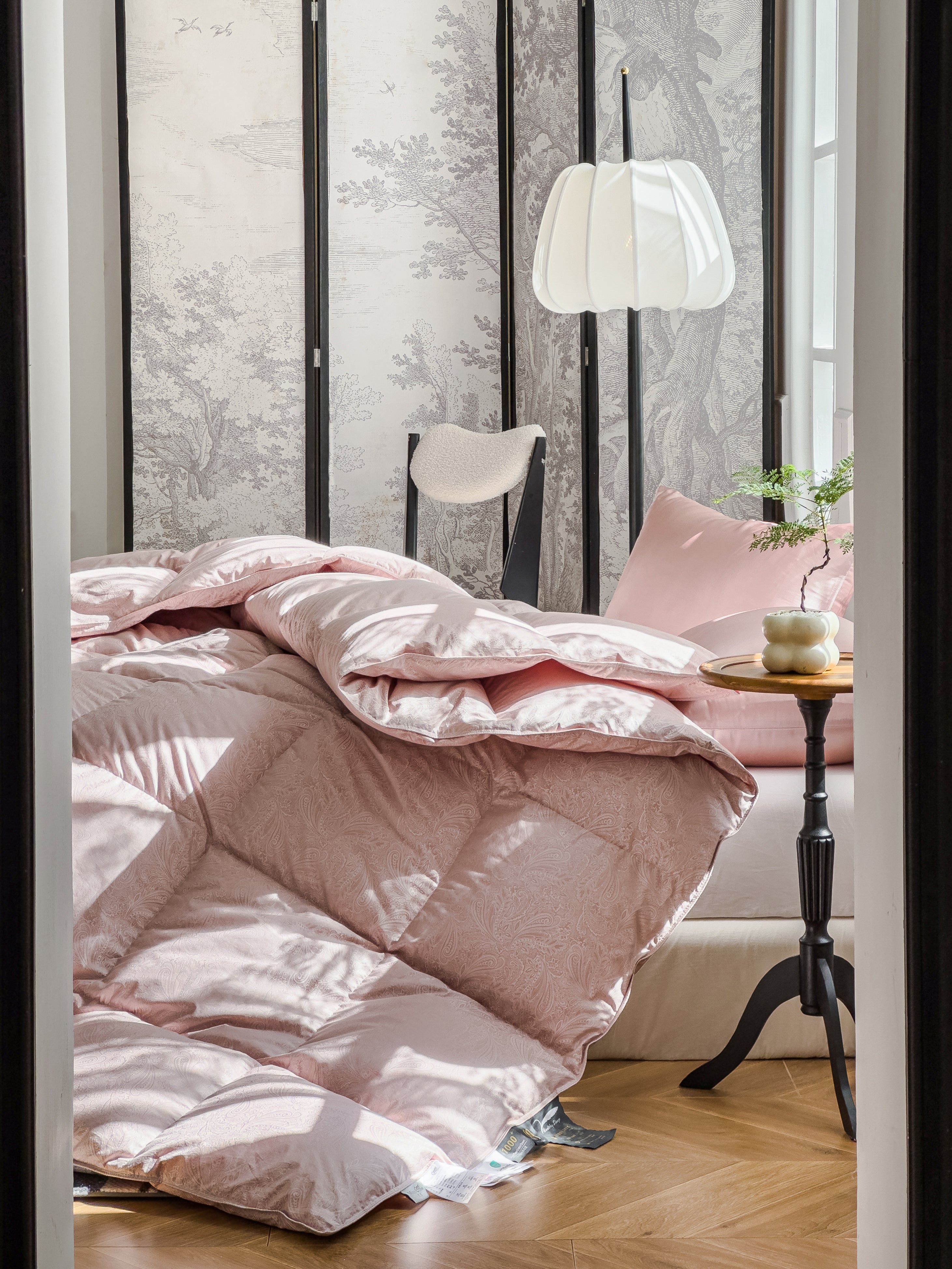 The Jacobean Desert Rose style brings a soft, romantic warmth—perfect for cozying up a classic or bohemian space. Crafted for year-round comfort. This comforter combines vintage charm with relaxed elegance.